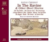 Anton Chekhov is regarded by many as the most outstanding short story writer. This may be a surprise at the first encounter with even his most famous stories, because they are rarely driven by plot or anticipation. They are often gentle in character, elusive in purpose; but they create a resonance in the imagination that rings long. Here are 12 stories, from the brightly comic to the overtly tragic, each full of the sharpest observations of personality and situation, and with implications beyond their brief form; the dying actor, the children playing a game, the cabman with his tragedy, the orator's mistake and, perhaps most richly of all, the family laid bare in 'In The Ravine'. With music by Tchaikovsky and Balakirev.